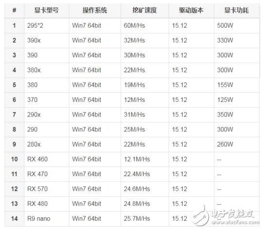 以太坊挖矿常用显卡算力表:挖矿靠显卡核心计算,所以AMD显卡比NVIDA卡更高效。选择AMD卡,要求显卡显存大于2G,推荐购买4G显存显卡。常见显卡的算力图示: